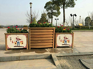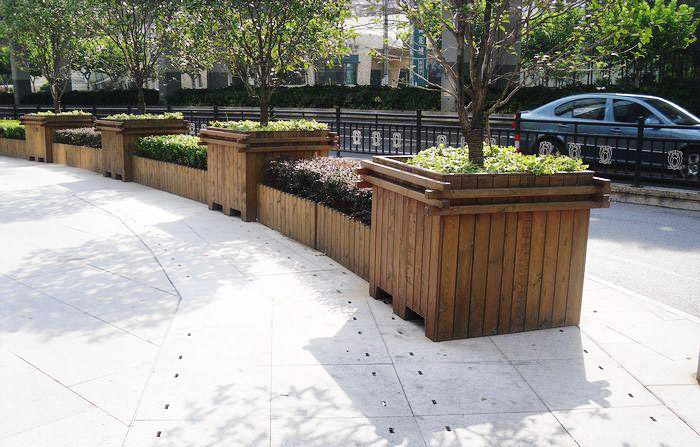防腐木花箱:实木材质自然舒适感好、可塑性大,可根据客户要求制作不同造型、特殊规格、颜色搭配的效果,