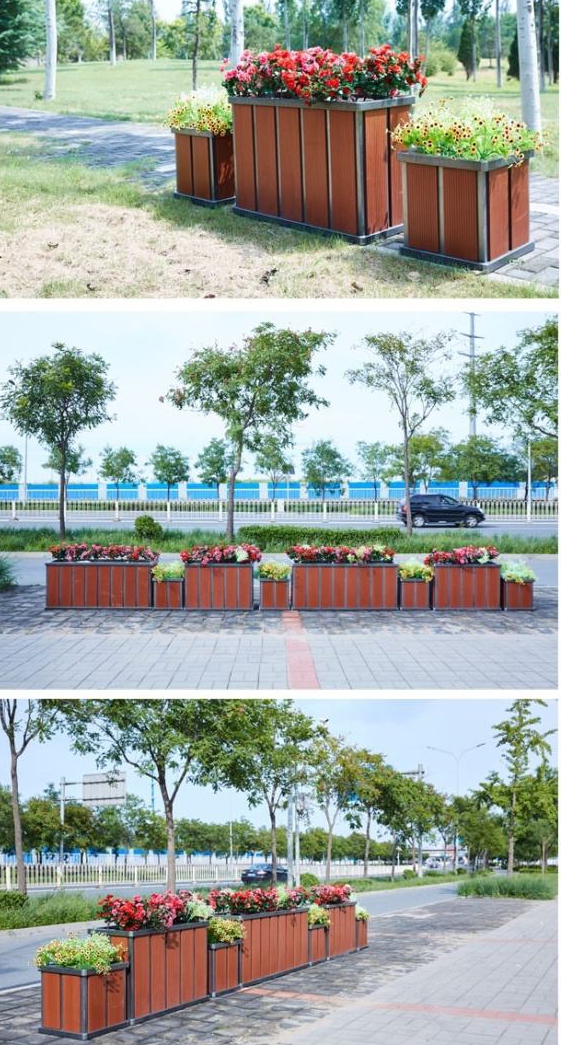 塑木花箱:现在人们对塑木材质的产品很具吸引,在市政花箱使用上也多设计为塑木材质,塑木材质板材